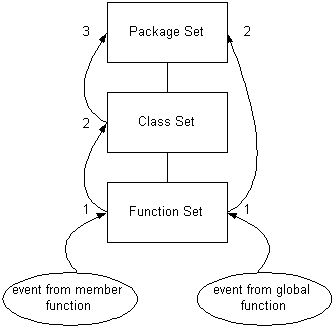 To determine if a function should generate a trace event, the Execution Tracing package uses a hierarchical lookup through the sets, as shown in