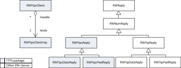 shows the classes in the FTPS package and their relationship to the FTP package.