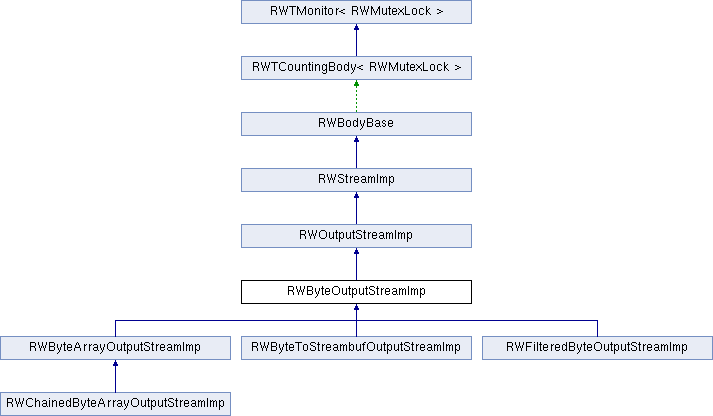 Implemented in RWChainedByteArrayOutputStreamImp, RWByteToStreambufOutputStreamImp, and RWFilteredByteOutputStreamImp.