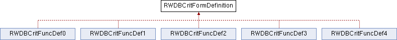 RWDBCritFuncDef0, RWDBCritFuncDef1, RWDBCritFuncDef2, RWDBCritFuncDef3, and RWDBCritFuncDef4 are derived from RWDBCritFormDefinition. They provide a simplified interface for functions requiring 0