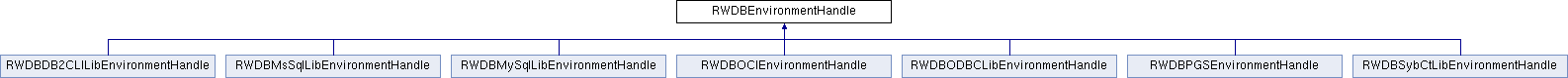 RWDBEnvironmentHandle is a base class from which a family of implementation-specific classes is derived. RWDBDatabase::environmentHandle() returns a pointer to this base class. To set connect time configuration parameters or configuration properties for an entire application, the application downcasts this pointer to the appropriate type, and uses its implementation-specific features. The configuration parameters that an application can set vary widely among vendors. Please see the guide for your Access Module.
