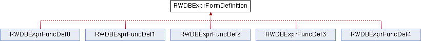 RWDBExprFuncDef0, RWDBExprFuncDef1, RWDBExprFuncDef2, RWDBExprFuncDef3, and RWDBExprFuncDef4 are derived from RWDBExprFormDefinition. They provide a simplified interface for functions requiring 0