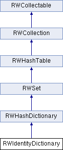 The class RWIdentityDictionary is implemented as a hash table, for the storage and retrieval of key-value pairs. Class RWIdentityDictionary is similar to class RWHashDictionary except that items are found by requiring that they be identical (i.e., have the same address) as the key, rather than being equal (i.e., test true