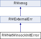 An RWNetWinsockInitError exception is thrown if requested version of the Windows Socket library could not be initialized, or if there was a problem cleaning up the Windows Socket library.