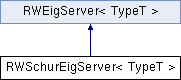 The class RWSchurEigServer encapsulates Schur decomposition eigenvalue servers. These servers are used to construct eigenvalue decomposition objects of type RWEigDecomp from Schur decompositions. A server can be configured to control which eigenvectors are computed, and other details of the computation.