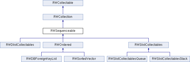 Class RWSequenceable is an abstract base class for collections that can be accessed by an index. It inherits class RWCollection as a public base class and adds a few extra virtual functions. This documentation only describes these extra functions.