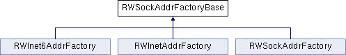 RWSockAddrFactoryBase is an abstract class that builds socket addresses. It represents the concept of an object that can build socket addresses from either an input string or from the C API representation.