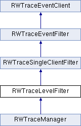 RWTraceLevelFilter is a single-client trace filter that accepts events only of the supplied severity level or higher, and forwards them to a client.