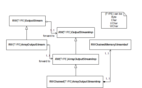 The extended framework adds memory streams to the binary, narrow character, Unicode character, and wide character stream families. These streams write data to memory. Only output streams are included because the performance problems occur only during output operations. A new handle class for each stream family is required in order to access the content of the memory written by the memory output stream.
