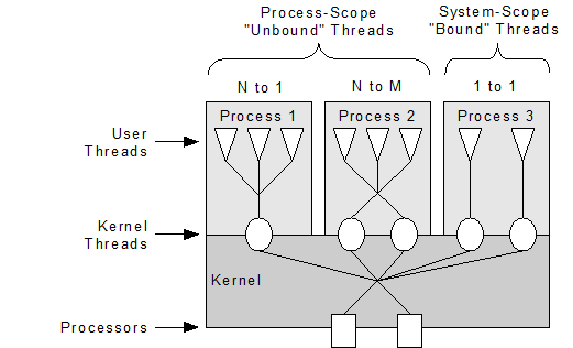 system-scope thread is typically bound in a 1:1 relationship with a kernel thread.