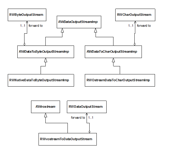 Classes RWDataToByteOutputStreamImp, RWDataToCharOutputStreamImp, RWDataFromByteInputStreamImp, and RWDataFromCharInputStreamImp are abstract classes that implement common functionality for each specific conversion from and to a data stream.