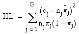 where oj is the number of positive observations in group j, pj is the model’s average predicted value in group j, and nj is the size of the group. The Hosmer-Lemeshow statistic follows a chi-squared distribution with G – 2 degrees of freedom. In the Business Analysis Module, the default value for G is 10.