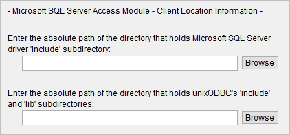 On Linux, the SQL Server Client line on the screen above does not display; rather, provide client location information on an additional dialog: