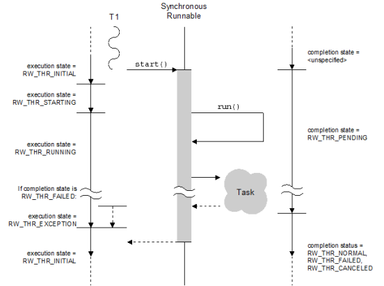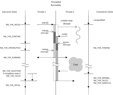 1. When first constructed, a runnable object is initialized with an execution state of RW_THR_INITIAL[1] and a completion state of RW_THR_PENDING{1}.