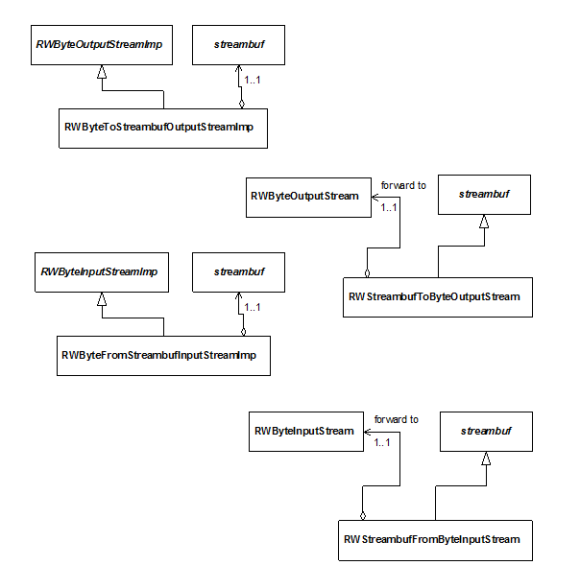 Classes RWByteOutputStreamImp, RWByteOutputStream, RWByteInputStreamImp, and RWByteInputStream belong to the common framework.