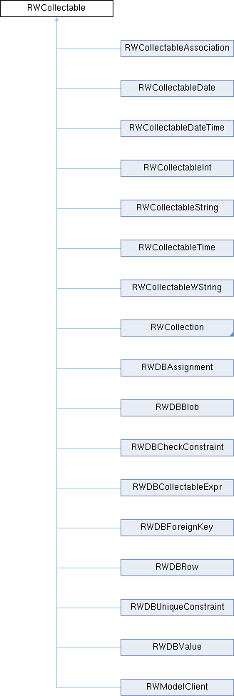 Class RWCollectable is an abstract base class for collectable objects. This class contains virtual functions for identifying, hashing, comparing, storing and retrieving collectable objects. While these virtual functions have simple default definitions, objects that inherit this base class typically redefine one or more of them.