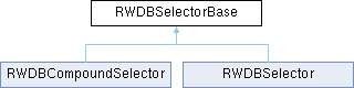 RWDBSelectorBase is a base class from which RWDBSelector and RWDBCompoundSelector are derived. It encapsulates the features common to RWDBSelector and RWDBCompoundSelector.
