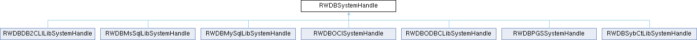 RWDBSystemHandle is a base class for system handles that are Access Module-specific. Each DB Access Module defines a system handle for its own database that encapsulates database vendor-specific handles. These handles provide access to the underlying database functionality, and vary widely among Access Modules.