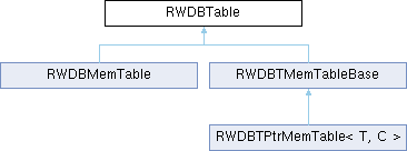 RWDBTable is a base class from which a family of classes derive. RWDBTable represents a table of information whose actual location is transparent. The data may reside in a database table or in program memory, or may be an SQL table expression, that is, a derived table or collection of rows returned from a database query. The types of tables to which RWDBTable provides an interface are: