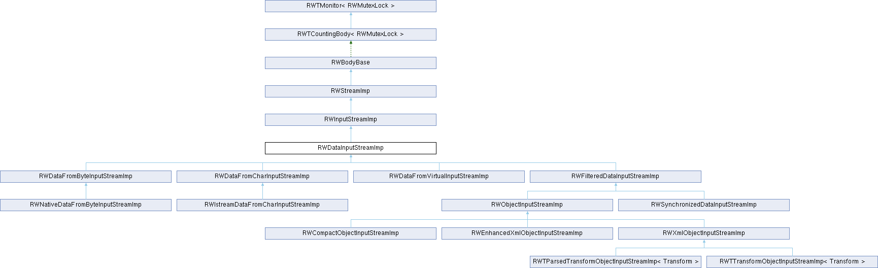 Implemented in RWDataFromVirtualInputStreamImp, RWFilteredDataInputStreamImp, RWIstreamDataFromCharInputStreamImp, RWNativeDataFromByteInputStreamImp, and RWSynchronizedDataInputStreamImp.