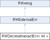 RWDecimalInexactErr is one of the error objects used to signal problems in computations involving RWDecimal and RWFixedDecimal objects. The other error object is RWDecimalOverflowErr. See RWDecimal and RWFixedDecimal for details about when the error objects are used. Also, see the section on error handling in the Currency Module User's Guide for information about how to set error handlers.