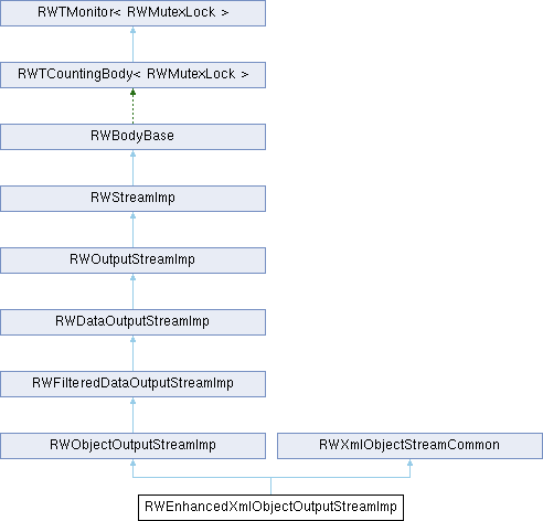 The class RWEnhancedXmlObjectOutputStreamImp writes objects as XML into the supplied RWDataOutputStream. Implements the body idiom from the handle/body pattern.