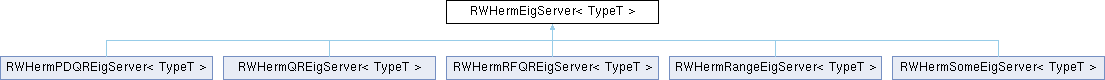 The class RWHermEigServer is an abstract base class for the Hermitian eigenvalue server. For each precision, the Linear Algebra Module provides several derived types: