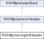 RWHttpUserAgentHeader is a specialization class of RWHttpGenericHeader. It defines the HTTP User-Agent request header. It is a helper class that formats its contents as User-Agent: header_value, where header_value is text that describes the client application.