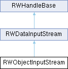 RWObjectInputStream is the handle class for object input stream implementation classes. Implements the handle idiom from the handle/body pattern. With the exception of constructors, assignment operators, and getFactory(), all member functions forward directly to the implementation associated with this handle during construction.