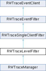 RWTraceLevelFilter is a single-client trace filter that accepts events only of the supplied severity level or higher, and forwards them to a client.