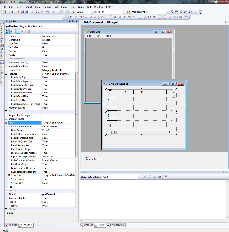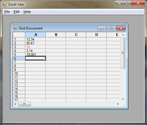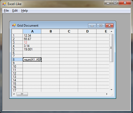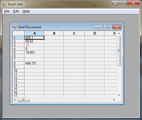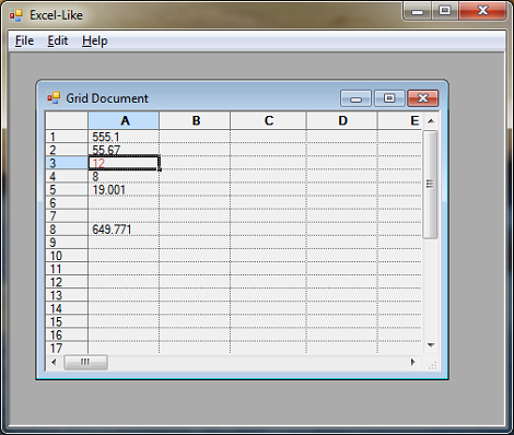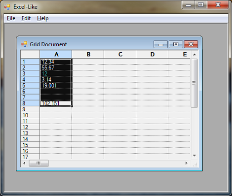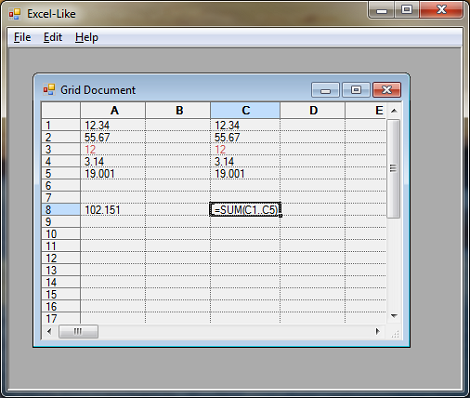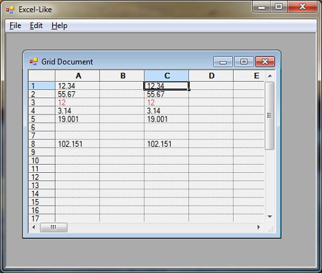 The ExcelLike sample demonstrates OBJECTIVE GRID FOR .NET features that mimic features of Microsoft Excel: