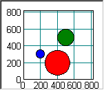 In this Bubble graph, the bubble’s radius (or half-width) is proportional to the bubble size variable.