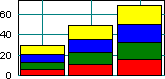 A Strata Vertical Bar graph is what others might call a stacked bar graph. It shows the summed total of a particular index over all groups. The length of the combined bar represents the total over all groups. Areas within the bar show how much each group contributes to the total. For example, a strata bar chart could be used to show the market share of individual car manufacturers (groups) over several years (indices).