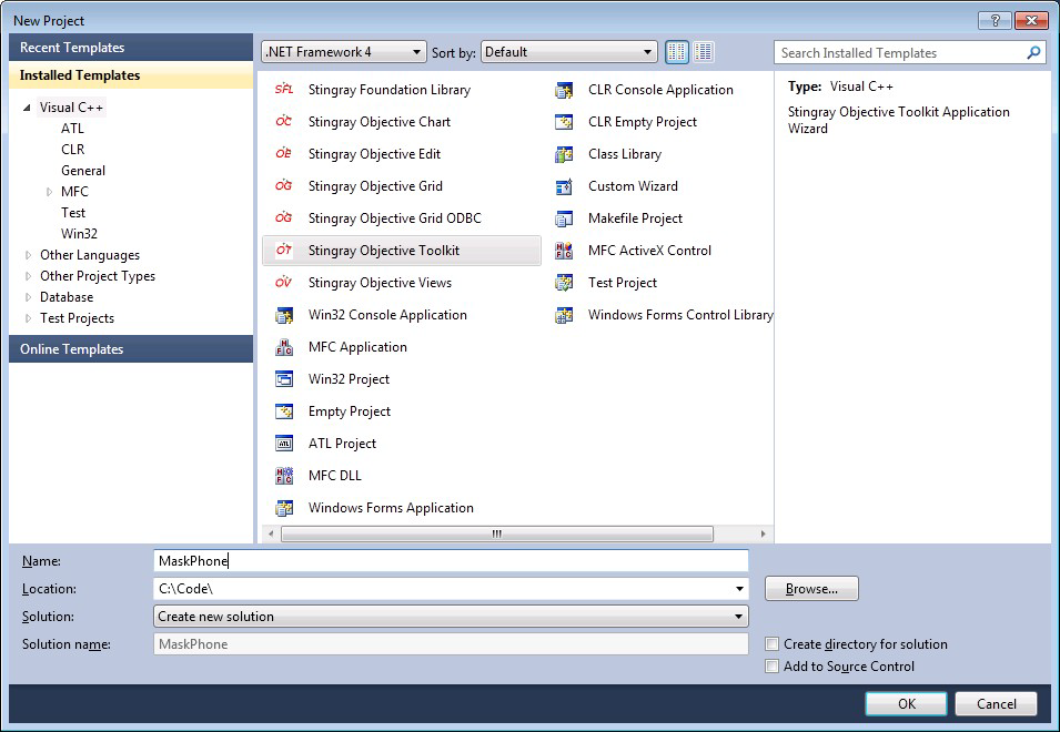 Follow the steps below to create a simple dialog-based application using the AppWizard. An SECMaskEdit object, added as a member of the dialog, displays an entry field that is formatted for a telephone number. Along the way, the application is given access to all the Objective Toolkit classes.