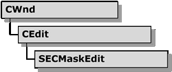 SECMaskEdit provides a subclassed CEdit that you can use to specify the format and restrictions for entered data. For example, if you wanted a user to enter a telephone number, you would (###) ###-####. SECMaskEdit would restrict cursor movement and data input to the location of the pound signs (#).