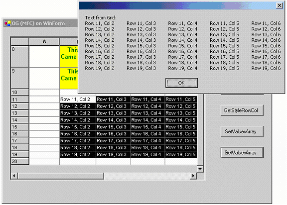 • GetValueRowCol button: shows a .NET dialog with current cell’s text