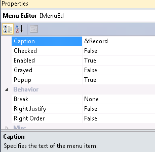 9. Double-click the empty menu item under Record in the menu resource edit view.