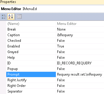(To open resources in Visual Studio, select View|Resource View. Right click on DbQuery.rc and select Properties.)