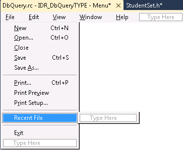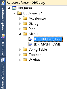 2. Expand Menu in the resource tree and double-click IDR_DBQUERTYPE.