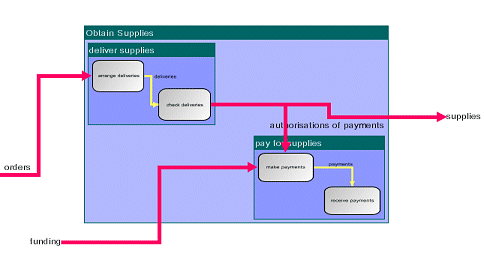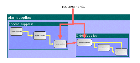 In Intergraph links to a collapsed grapher, two links have the visible destination node pay for supplies, but their real destination node is the inner node of pay for supplies, which is not visible in Intergraph links to a collapsed grapher, but can be seen in Intergraph links to an expanded Grapher.