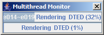 In its turn, the monitor notifies any registered listeners of the progress being made by the monitored tasks. Multithread Monitor shows the IlvThreadedActivityMonitorPanel class, which is a Swing component implementing the IlvThreadedActivityMonitor.ActivityListener interface. It displays progress bars for monitored activities.