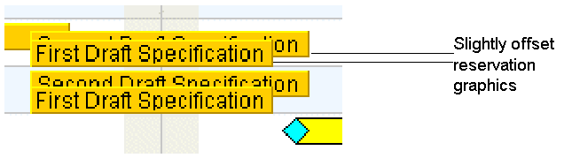 A Gantt row in a Schedule chart is configured to render one or more resource reservations corresponding to one or more activities. If the default layout is enabled and the same resource is reserved for more than one activity, the multiple reservation graphics may overlap on the corresponding row. To avoid this and ensure a neat arrangement of the reservation graphics, an IlvActivityLayout object is used by an IlvGanttRow to compute the positions and z-order of its activity graphics.