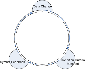 A condition triggers an event in a symbol whenever specific criteria are matched. The event provokes the symbol to change its representation to display the parameter change visually, for example, when the object is selected or when a parameter has a specific value. As with parameters, a condition can be bound to multiple objects in a symbol.