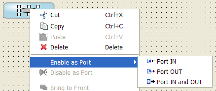 Right-click the ellipse and click Enable as Port > Port IN and OUT in the pop-up menu.