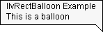 IlvManager manager = new IlvManager(); // Creates the composite graphic with an IlvCenteredLayout IlvCompositeGraphic node = new IlvCompositeGraphic(); node.setLayout(new IlvCenteredLayout(new Insets(4,10,4,10))); // Creates the balloon IlvRectBalloon balloon = new IlvRectBalloon(); balloon.setOrientation(SwingConstants.NORTH_WEST); balloon.setPointerDepth(10); balloon.setShadowThickness(0); balloon.setShadowColor(Color.black); balloon.setBorderColor(Color.black); // Creates a multiline label IlvZoomableLabel label = new IlvZoomableLabel(new IlvPoint(0,0), "IlvRectBalloon Example\nThis is a balloon"); // Adds the balloon and its label node.setChildren(0,balloon); node.setChildren(1,label); manager.addObject(node, true);