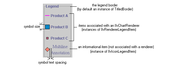 the IlvChartRenderer#createLegendItems method of each renderer of