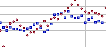 the blue one using a square IlvMarker and the other one a circle IlvMarker: