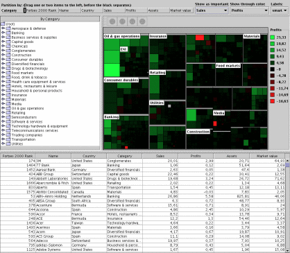 A treemap view, an innovative approach to viewing large quantities of data, helping users better analyze and understand the data;