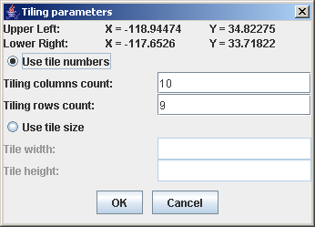 12. To use load-on-demand, select the Use Tiling check box and specify the number and lines and columns of tiles you want to divide the limits region (specified above) into. Given that WMS servers usually limit the image size of a request, this helps improve the overall region resolution by using the specified request image size per tile (one image request per tile load instead of a unique image request for the whole area of interest).