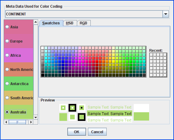 2. Select CONTINENT from the Meta Data Used for Color Coding list.